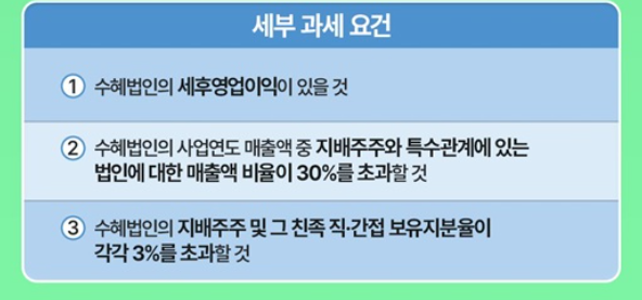 수혜법인이 특수관계 법인으로부터 사업기회를 제공받고, 해당 사업기회로부터 영업이익을 창출했을 경우가 과세 대상입니다.