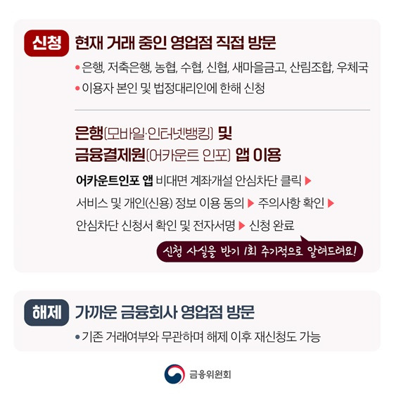비대면 계좌개설 안심차단 신청 방법