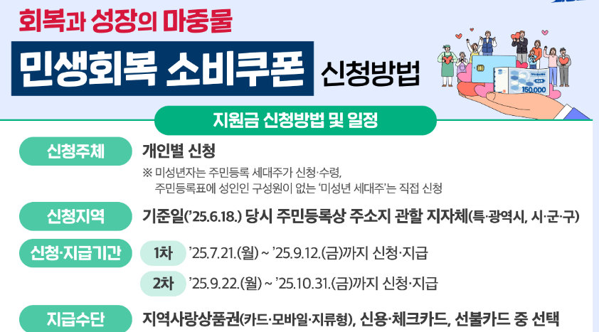 이번 2차 소비쿠폰은 단순히 개인의 소비 여력을 높여주는 정책을 넘어, 국민 모두가 함께 민생 회복의 길을 걷는 계기가 될 수 있습니다. 나에게 해당되는지 확인해보고, 해당된다면 생활에 실질적인 도움이 되는 지출에 적극 활용해보시기 바랍니다.