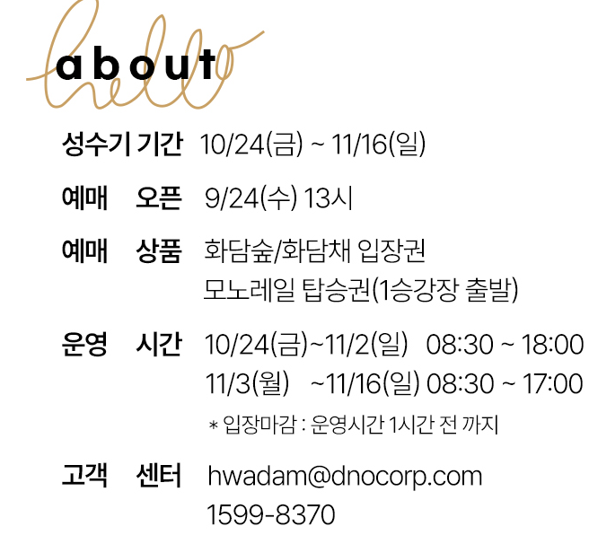 가장 중요한 것은 입장권 사전예약입니다. 올해는 9월 24일 오후 1시부터 화담숲 공식 홈페이지에서 온라인 예약이 시작됩니다.