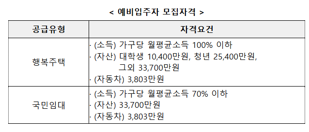 행복주택 예비입주자 모집 자격