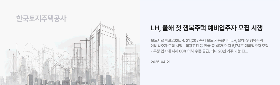 공지사항: LH 홈페이지(www.lh.or.kr)와 지역별 공공주택 공지사항을 확인합니다.