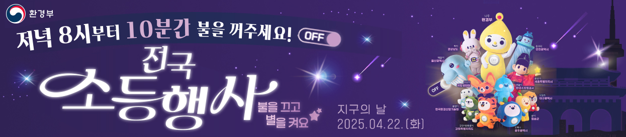소등 행사 동참: 4월 22일 오후 8시부터 10분간 전등을 끄고 에너지 절약에 동참합니다.