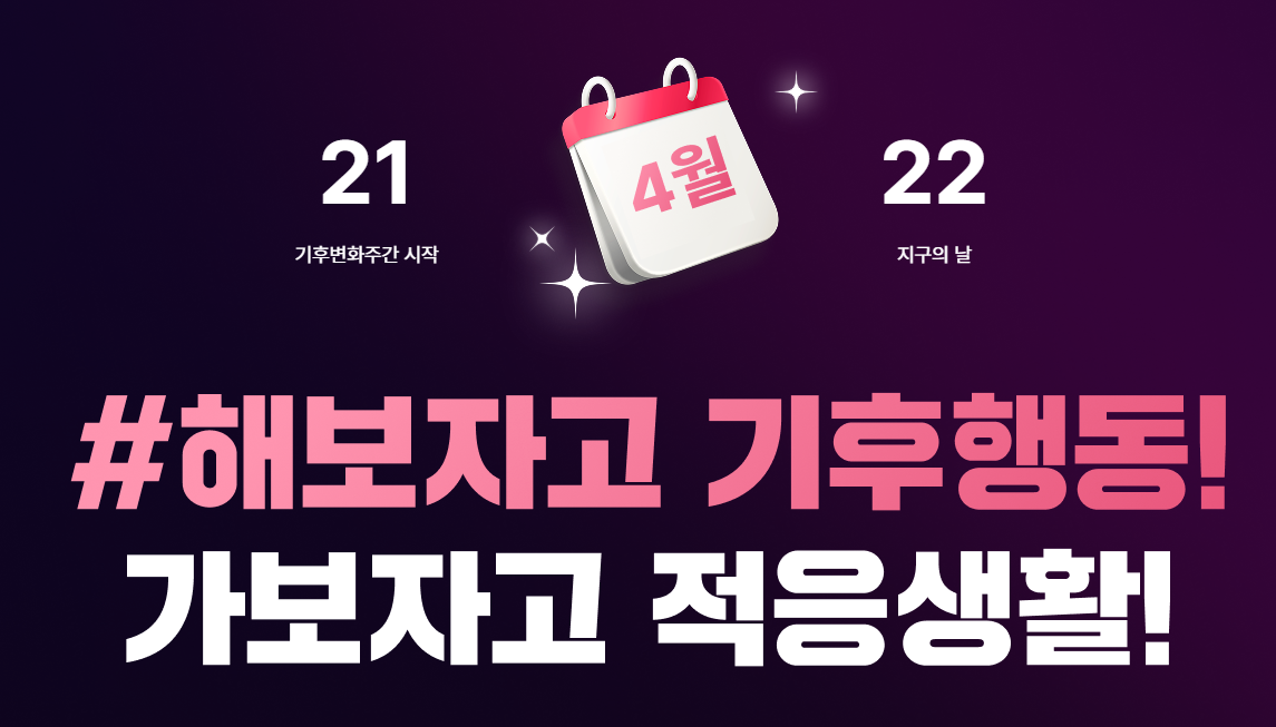 시민 한 사람 한 사람의 참여가 모여 큰 변화를 만듭니다. 4월 22일 소등 행사와 배달의민족 ‘일회용 수저·포크 안 받기’ 캠페인에 동참하고, 정화 활동, 청원 서명, 친환경 실천으로 지구의 날을 기념해 보시길 바랍니다.