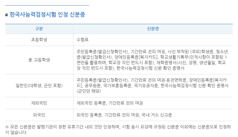 신청 시 유의할 점은 신분증입니다. 주민등록증, 운전면허증, 여권 등 유효기간 내의 신분증만 인정되며, 학생증이나 기타 신분증은 허용되지 않습니다. 시험 당일 신분증 미지참 시 응시가 불가하므로 사전 준비가 필요합니다.