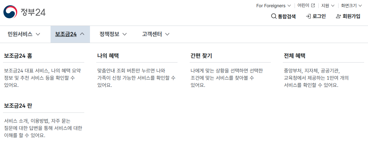 보조금24 맞춤형 혜택