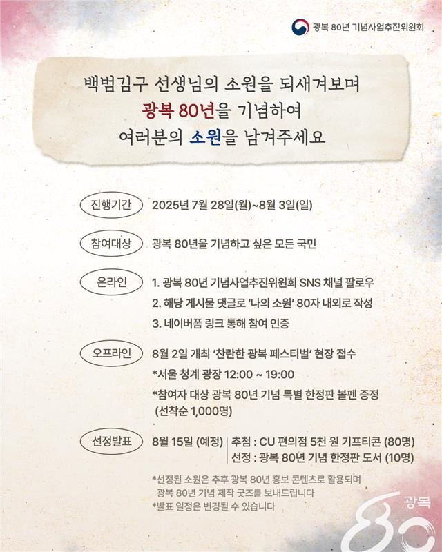 다가오는 8월 15일, 대한민국은 광복 80주년을 맞이합니다.