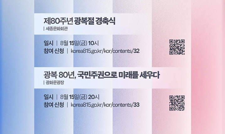 8월 15일 오전 10시, 서울 세종문화회관에서는 ‘제80주년 광복절 경축식’이 거행됩니다.